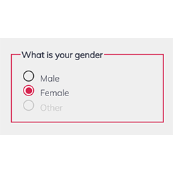 • Navigation au clavier : Les boutons radio doivent pouvoir être parcourus et sélectionnés via le clavier. L’utilisateur doit pouvoir se déplacer entre les options à l’aide des flèches directionnelles, de la touche Tab et sélectionner une option avec la touche Entrée.