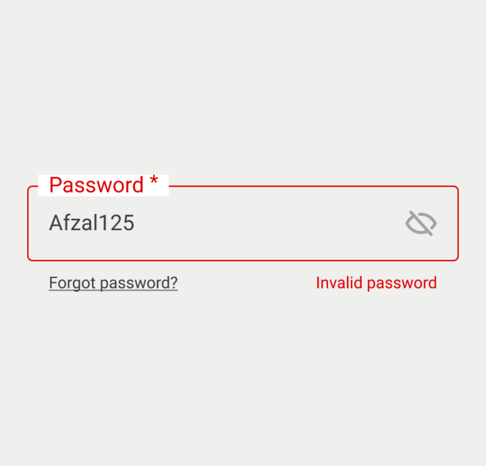 - États d’erreur et de succès : Des indices visuels, comme un changement de couleur de bordure ou un texte d’aide, indiquent la validité du mot de passe saisi.