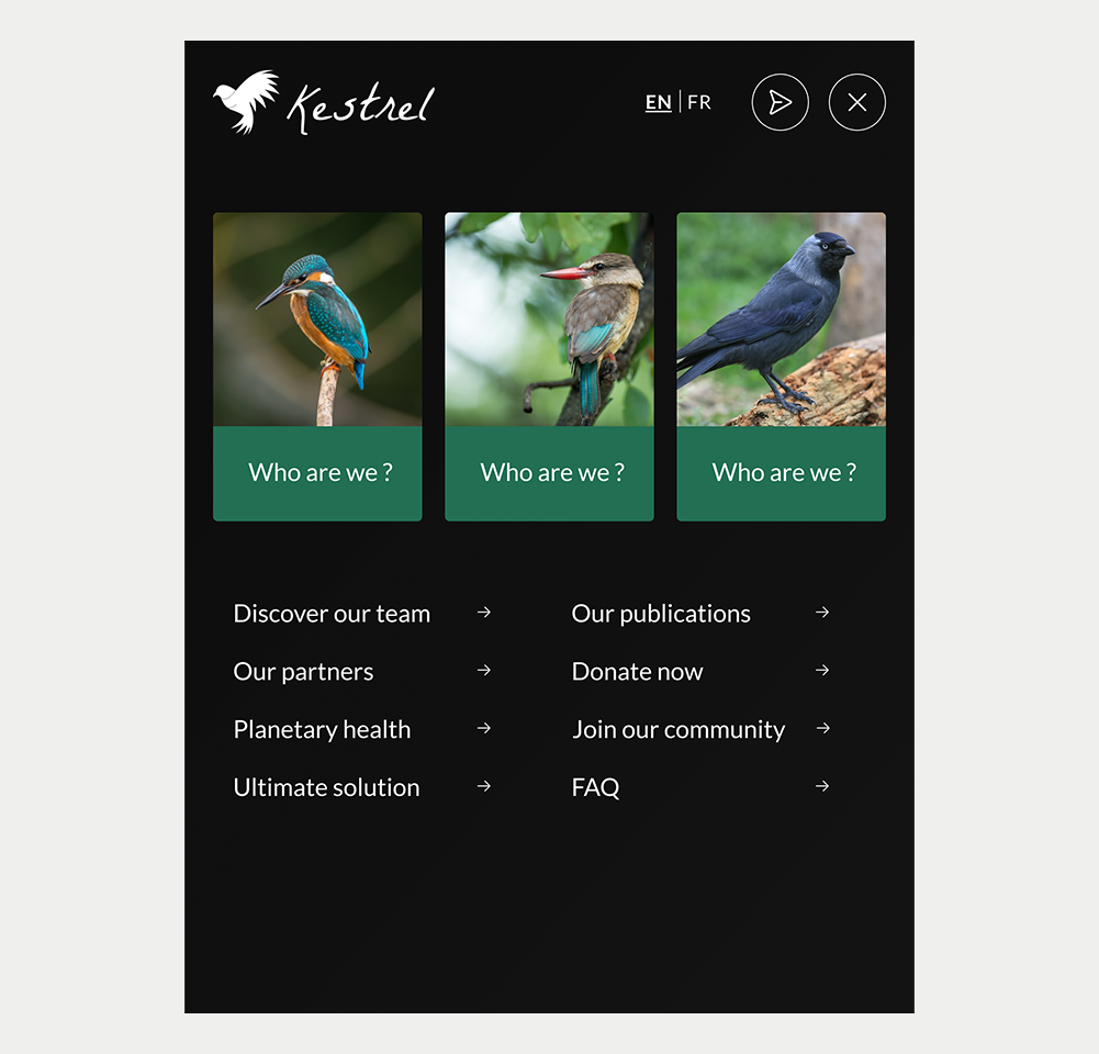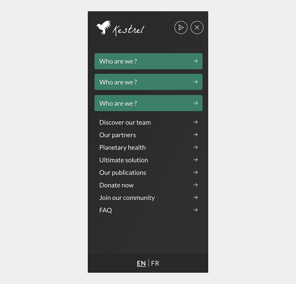 - Pour les sections essentielles du site. Si certaines rubriques doivent être vues dès l’arrivée (par ex. sélecteur de langue), un menu burger risquerait de les masquer et de diminuer leur visibilité.