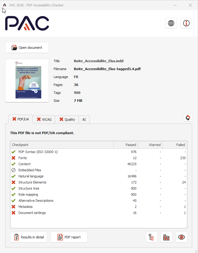 - PDF non marqué comme « tagged » :