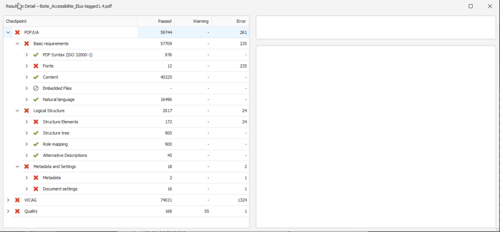 Assurez-vous que toutes les erreurs ou échecs sont corrigés ou validés. Chaque problème doit être traité avant que le document ne soit considéré comme totalement accessible.
