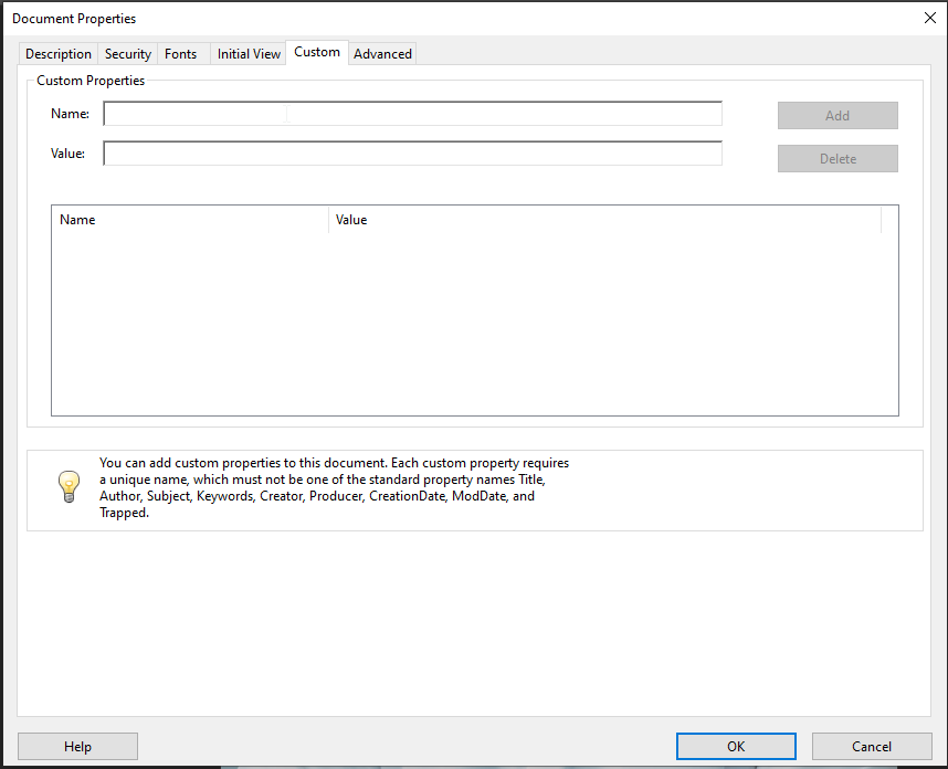 Solution : Ajoutez un titre au document dans les Propriétés du document, sous l’onglet Description, pour fournir un contexte aux utilisateurs. - Pas de signets :