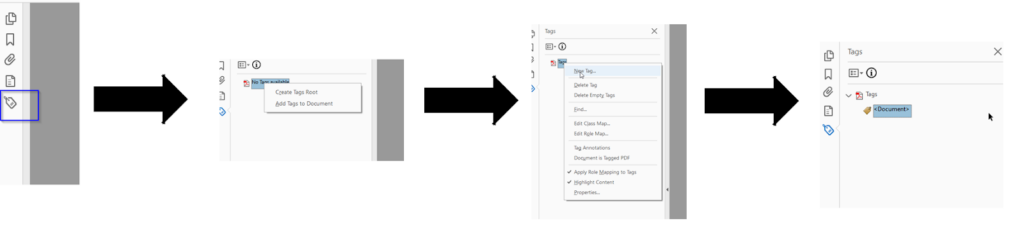 Conseil : Lors de l’étiquetage manuel d’un document PDF, il est important de s’assurer de ne pas cliquer par erreur sur la fonction ‘Autotag Document’. Pour éviter de perdre le travail effectué, marquez d’abord le document comme un ‘PDF balisé’. Cela garantit que l’étiquetage manuel est préservé et qu’il ne sera pas accidentellement écrasé par un étiquetage automatisé.
